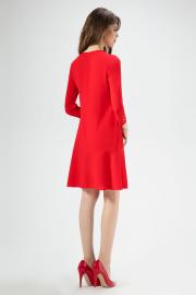 Легкость, непринужденность и очаровательность- это то, что объединяет обладательницу этого платья . Эффектное платье полуприлегающего силуэта, слегка расширенное к низу, с круглым вырезом горловины , декорированно пришивными стразами, с наргудными вытачками, отрезное по линии бедер, Спинка со средним швом и тесьой - молнией Рукава длинной 7/8 , по линии низа декорированны пришивными стразами. Аккуратные линии кроя, простые решения в минималистичном стиле- и вы выглядите лаконично и стильно.