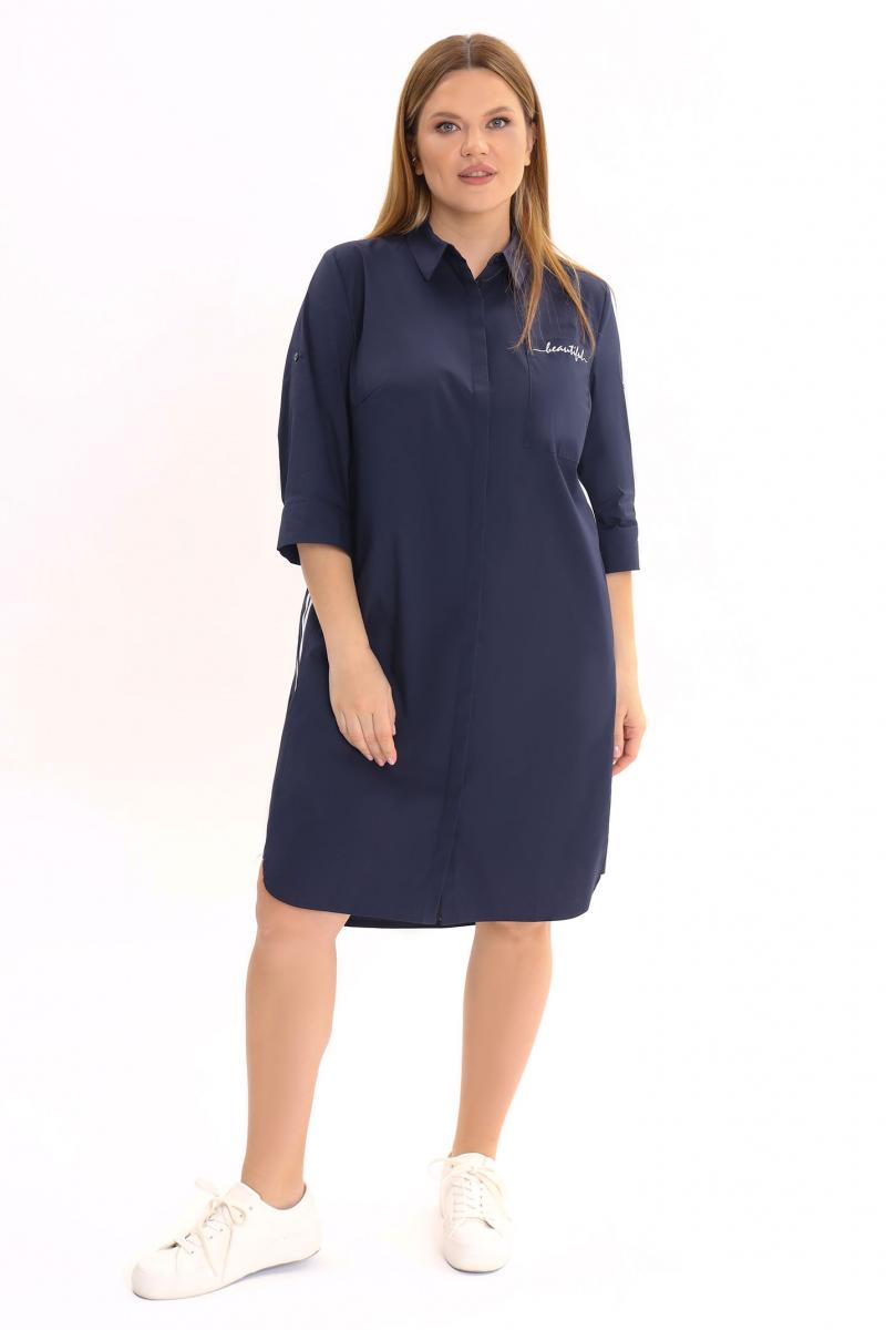 Летнее платье рубашка с рукавами до локтя – комфортный вариант для повседневной носки. Надевайте его дома, на прогулку, встречу с друзьями. Спортивное платье прямого кроя с лампасами по бокам, нагрудным и боковыми карманами скрывает недостатки фигуры. Длина модели – до колена, а линия низа – округлая. Платье на пуговицах пошито из легкой трикотажной ткани. Изделие стирается в машинке, не деформируется, не теряет цвет. Вы можете купить платье женское большого размера, предварительно выбрав нужный из таблицы.
