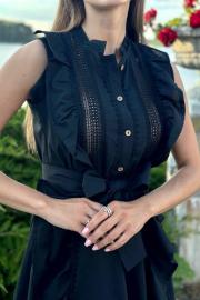Воротничок, кружева, планка с пуговицами, воланы. Эта модель не простая, требует лишних 10 минут на глажку утюгом, но эффект от него будет неизгладим.