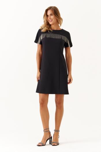 Свободное мини-платье А-силуэта с полупрозрачными бантами. Детали: A-силуэт, свободный крой, углубленная горловина переда и спинки, боковые карманы, на подкладке 100% хлопок. Длина платья от плечевого шва по переду около 81 см в размерах 40-42 и около 83 см в размерах 44-46