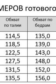 Размер Обхват груди (см) Грудь Обхват талии (см) Талия Обхват бедер (см) Бедра