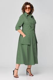 Платье в стиле Сафари, в натуральном цвете оливка, оригинальный фасон, выполнено из хлопка. Сочетает в себе оригинальность, практичность и простоту. Приталенный силуэт с центральнобортовой застежкой на планку. Воротник рубашечный, отложной. Рукав втачной одношовный, 3/4 с отворотом. Спинка с кокеткой. Отлетные рабочие карманы. Нижняя часть платья с глубокими складками в области талии. Платье дополняется деталью в виде жилета( он съемный ). Длина платья 125 см.