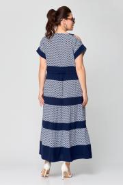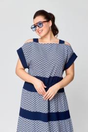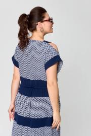 Платье приталенного силуэта, с отрезной линией талии, кулиской и шнуром, регулирующим прилегание в этой области. Верхняя часть со спущенным плечом. Горловина - лодочка. Платье подойдет на каждый день, из качественной приятной ткани.