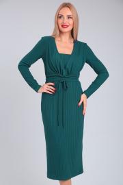 Платье из трикотажного полотна, полуприлегающего силуэта, верхняя передняя часть отлетная, с имитацией запаха и завязывающимся поясом. Рукав втачной одношовный. Длина по спинке 117. Длина рукава 63.