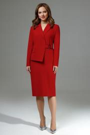 Платье полуприлегающего силуэта из костюмной ткани. Пиджачный воротник, иммитация жакета сверху, клапан справа. Рукав втачной длинный с потайной молнией в заднем шве. Застежка на потайную пуговицу и пряжку по переду. Без подкладки. Длина платья 109 Длина рукава 58