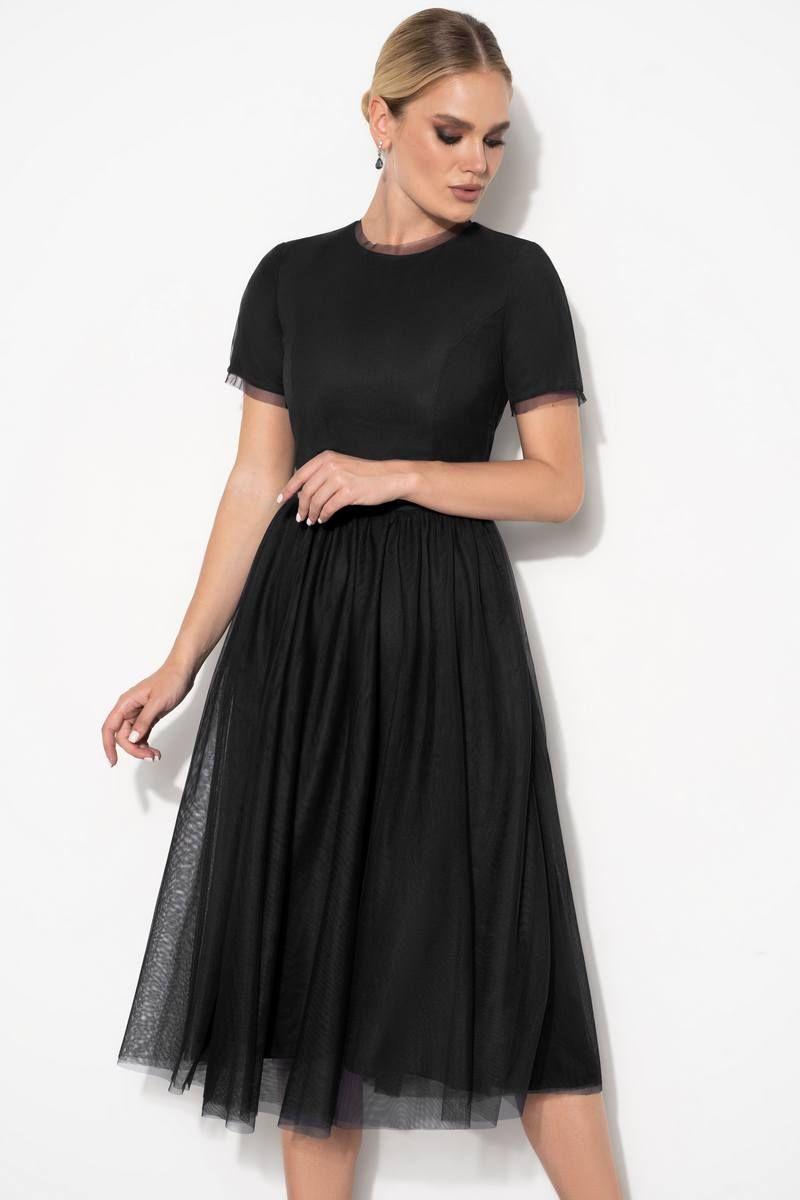 Представляем вашему вниманию роскошное черное фатиновое платье, воплощающее в себе идеальный баланс между элегантностью и чувственностью. Изготовленное легкого фатина, это платье создает невесомый, воздушный образ, который непременно притянет к себе восхищенные взгляды. Ощущайте себя уверенно и привлекательно в этом платье, притягивая восторженные взгляды окружающих. Платье женское многослойное, с притачной по горловине и низу рукава узкой отделочной деталью из сетки, силуэта песочные часы, отрезное по линии талии, длиной миди. Верхний слой платья из отделочного материала - сетка, нижний слой - легкая плательная ткань. Верхняя часть переда и спинки (лиф) с рельефами, выходящими из проймы и идущими до линии талии. Нижняя часть платья (юбка) многослойная, расклешенная книзу. Верхний слой юбки состоит из двух слоев сетки. В шве притачивания юбки к лифу - сборка. Спинка платья со средним швом, в котором обработана застежка на потайную тесьму-молнию. Рукава втачные одношовные, короткие. Горловина круглой формы обтачная. Это платье идеально сочетается с жакетом 22-507-1. Длина по среднему шву спинки до талии - 38,0 см (±1,0 см), Длина по среднему шву спинки до низа - 81,0 см (±3,0 см), Длина рукава - 20,0 см (±1,0 см). Тип ткани на платье: плательно-блузочная.