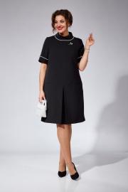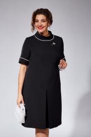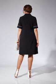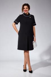 Платье женское свободного покроя, А-образного силуэта, с естественной линией плеча. Рукав втачной одношовный длиной выше локтя и отрезной манжетой. Горловина округлой формы со стойкой. По переду выполнен подрез и встречная складка. В швы втачивания стойки и притачивания манжет вставлена декоративная тесьма. В боковых швах обработаны карманы. Застежка в среднем шве спинки на потайную тесьму-молнию. Имеется съемная декоративная брошь.