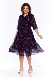 Платье женское расклешенное от талии на подкладке. Центральная бортовая застежка на петли пуговицы. Воротник блузочный на отрезной стойке. Рукав втачной одношовный, низ рукава на резинке и имитацией рюши. Имеется навесной отделочный пояс.