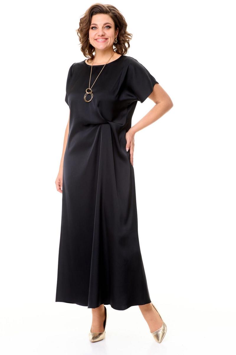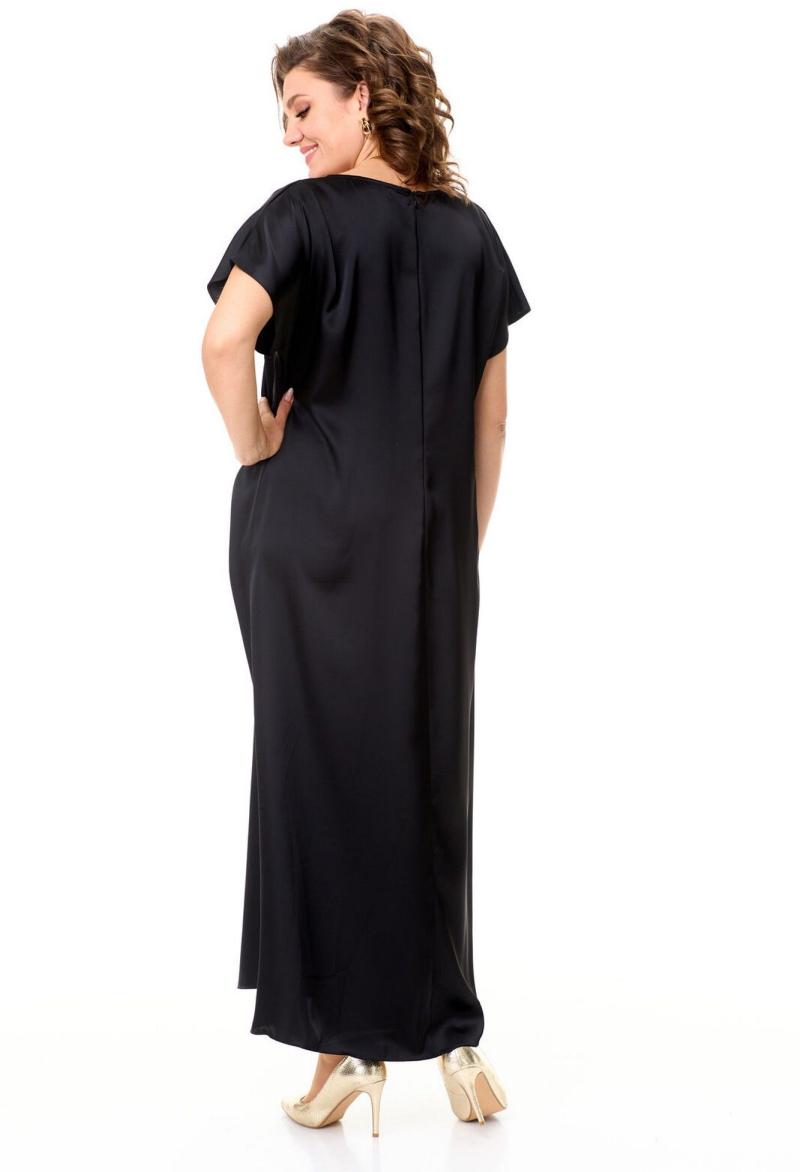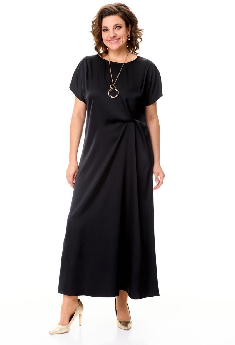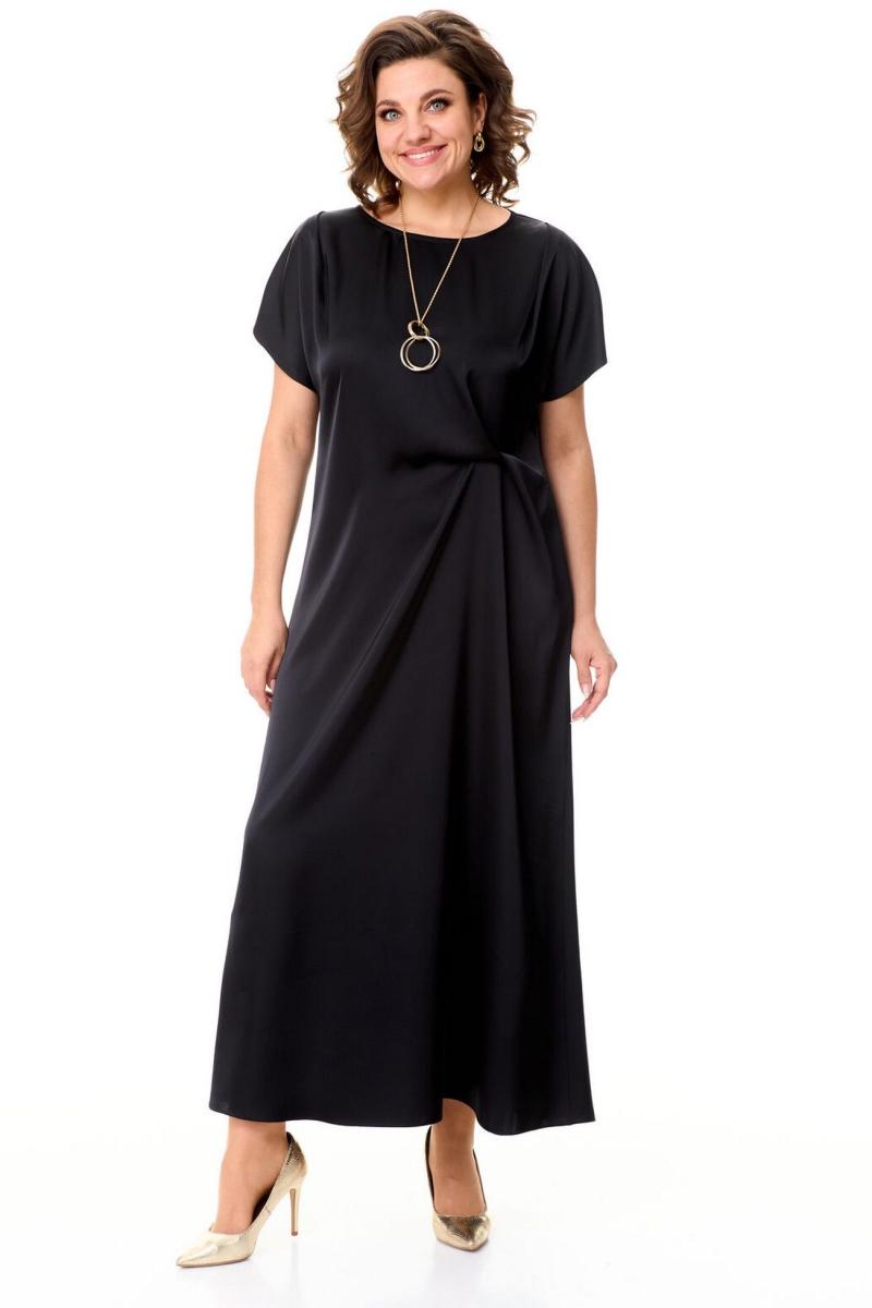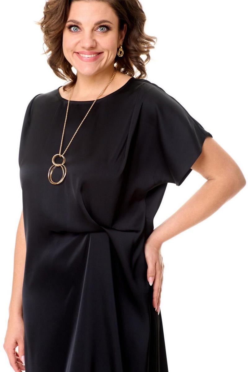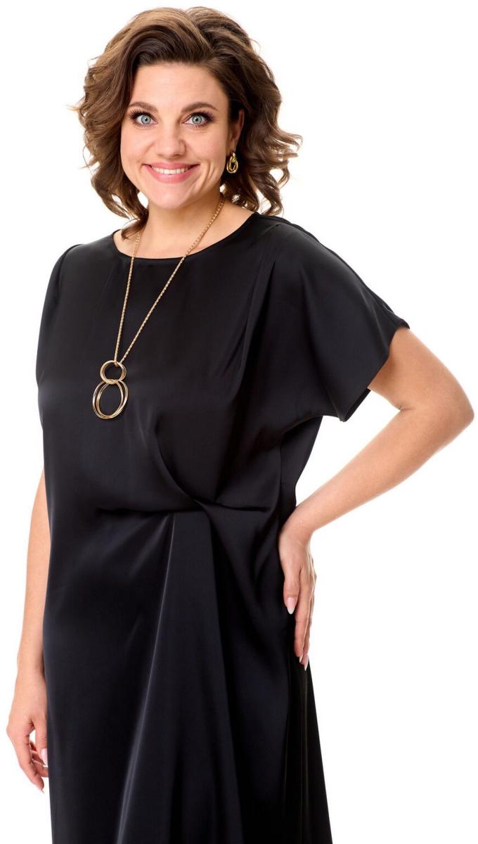 Платье женское свободного покроя расширенное к низу. Горловина округлой формы. Пред с авторским элементом создающим элегантную драпировку. Спинка со средним швом и застежкой на тесьму-молнию. Рукав цельнокроеный типа "летучая мышь". В комплект входит декоративная подвеска.