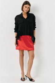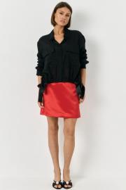 Юбка из атласной плотной красной ткани. Юбка А-образного силуэта, с потайной молнией.