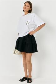 Юбка с воланами, на резинке, выполнена из льна, в черном цвете.