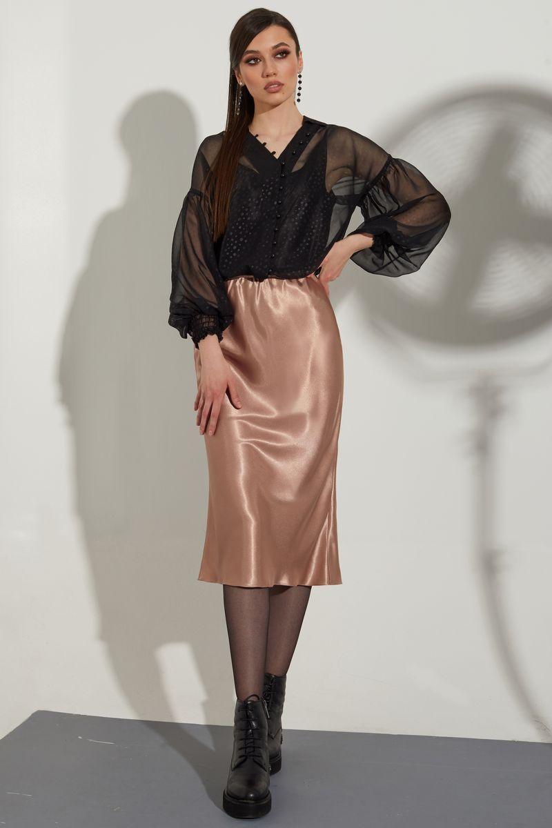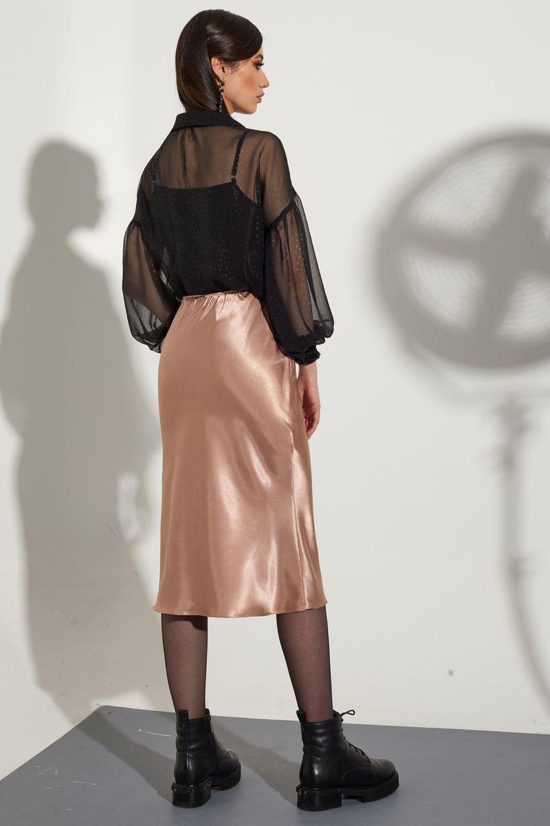Описание внешнего вида: Юбка без пояса, верхний срез обработан резинкой. Переднее и заднее полотнище юбки выкроено по косой. Силуэт: прямой Цветовая гамма для верха, подкладки, фурнитуры, отделки: юбка из эластичной ткани в одной цветовой гамме. Комплектация: юбка без подкладки