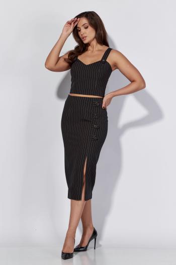 Стильная юбка миди из хлопка с обтачкой по верхнему краю, застёгивающаяся на потайную молнию в боковом шве. Верхняя часть юбки облегающая с вытачками, а нижняя с притачными воланами и рюшами в два ряда.