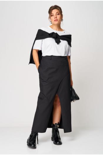 Юбка из плотного трикотажа: - силуэт трапеция - складки по переду - прилегание по талии за счет резинки - ассиметричный низ - застёжка на металлическую молнию сзади