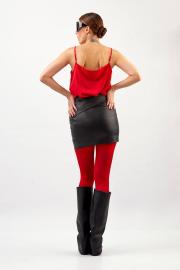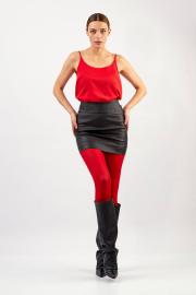 Юбка из эко-кожи: - длина: мини - на подкладке - верх юбки: асимметричный, с кокеткой и поясом, перекрещивающимися по диагонали - сбоку — декоративный вырез - застёжка: потайная молния в боковом шве