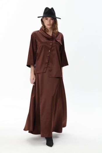Юбка: - силуэт расширенный - покрой полусолнце - длина миди - верх с поясом - застёжка сзади в среднем шве на потайную молнию и петлю с пуговицей на поясе - на подкладке. Подъюбник: - из подкладночной ткани «гранд» и поливисзовы - силуэт расширенный - длина миди - верх с поясом на резинке