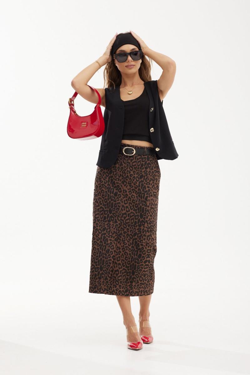 Юбка прямая из джинсовой ткани. Длина миди. Верх на поясе со шлевками. Застежка по переду на молнию и кнопку на поясе. В боковых швах карманы. По низу переда юбки шлица. На боковых швах накладные карманы. В комплекте съемный ремень. Модель ремня может отличаться от представленного на фото. Измерения по готовому изделию 44 р-р: ОТ - 76 см., ОБ - 96 см. 46 р-р: ОТ - 80 см., ОБ - 100 см. 48 р-р: ОТ - 84 см., ОБ - 104 см. 50 р-р: ОТ - 88 см., ОБ - 108 см. 52 р-р: ОТ - 92 см., ОБ - 112 см.