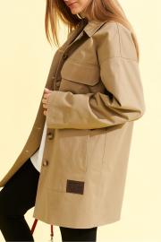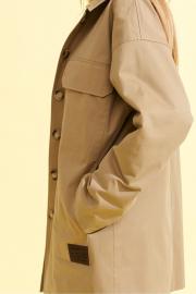 Парка женская из хлопковой костюмной ткани прямого силуэта, со спущенным плечом, длиной ниже линии бедер, с центральной бортовой застежкой на петли и пуговицы, на подкладке. Полочки с 2мя совмещенными накладными верхним с клапаном и нижним карманами. Спинка со средним швом. Рукав втачной двухшовный. Воротник отложной с отрезной стойкой.