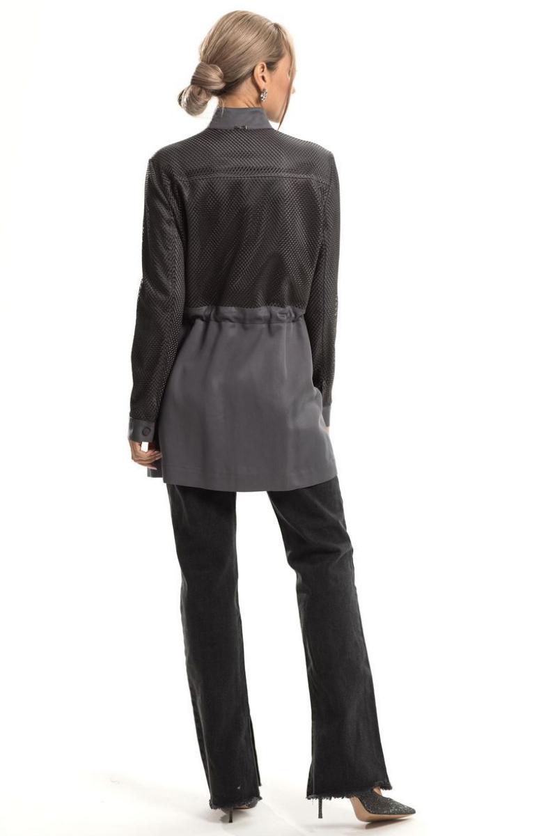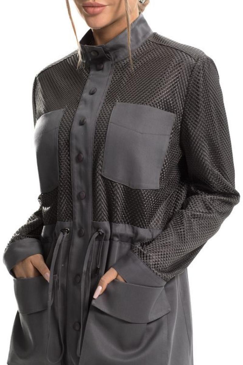 Цветовая гамма для верха, подкладки, фурнитуры, отделки: куртка из ткани в одной цветовой гамме. Верхняя часть переда, спинки и рукава двухслойные, верхний слой- сетка в тон основной ткани.