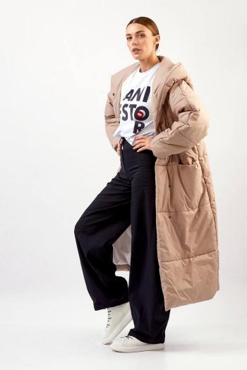Спортивный комплект из куртки и брюк, выполненных из тонкой плащевой ткани. Куртка-ветровка на подкладке, свободного прямого кроя на центральной застежке на молнию. Рукав втачной, снизу дополнен трикотажной манжетой. Куртка дополнена капюшоном и боковыми карманами. По низу куртка дополнена эластичным шнурком с фиксатором. Брюки прямого свободного кроя, на подкладке, с притачным поясом на эластичной тесьме. По низу дополнены эластичным шнурком с фиксатором. Брюки дополнены боковыми карманами. Длина куртки от плечевого шва 62см. Длина рукава 60см. Длина брюк по боковому шву 93см.
