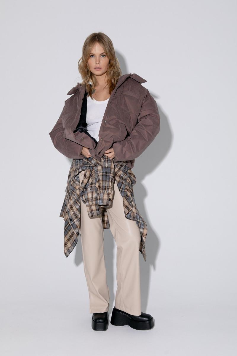 Стеганая оверсайз куртка с капюшоном. Детали: прямой силуэт, свободый покрой, спущенная линия плеча, капюшон, функциональные карманы, застежка на пробивные металлические кнопки, на подкладке. Наполнитель куртки ISOSOFT толщиной 200 г/м2. Длина по спинке около 72 см в размерах 40-46 и около 74,5 см в размерах 48-52, длина рукава+ плечо около 53+8 см