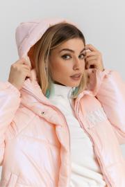 Куртка стеганная, свободного силуэта с рукавом -реглан. Горловина с капюшоном. Застежка на молнию с планкой и кнопками. По линии талии прорезные карманы. По левой передней полочке и спинке авторская вышивка. Утеплитель isosoft.