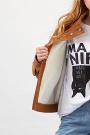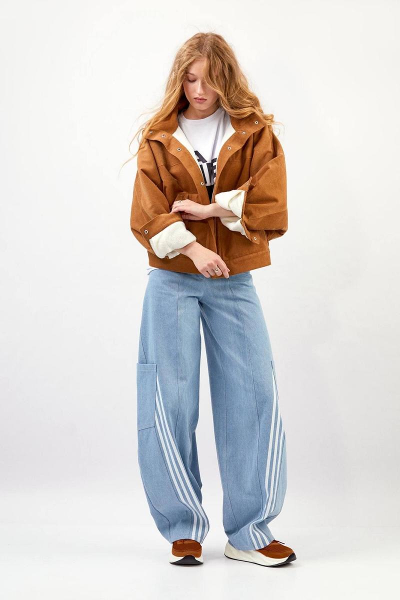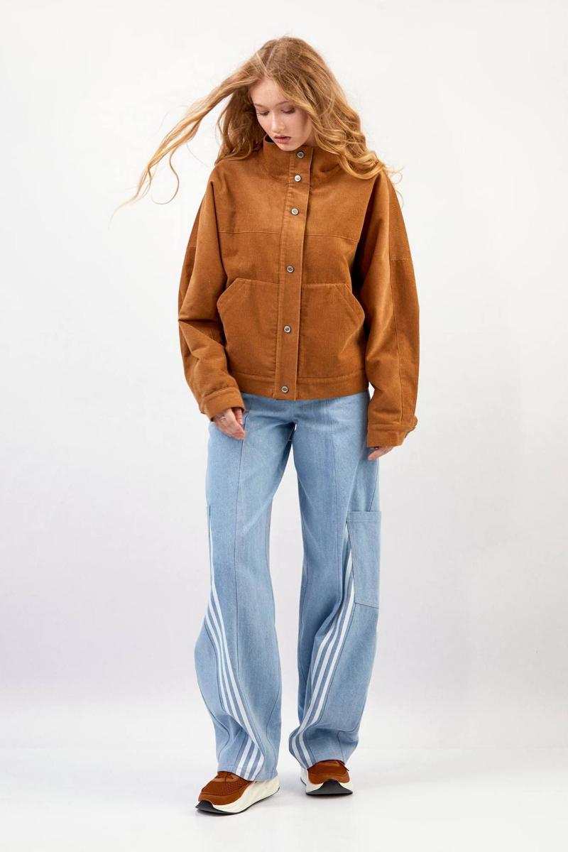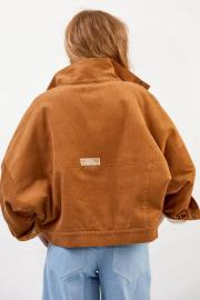 Куртка из вельвета : - свободный силуэт - утеплённая флисовой подкладкой - рукав покроя «летучая мышь» - передняя кокетка, цельнокроенная с рукавом - кокетка на спинке с вышитой аппликацией - передние карманы «кенгуру», утеплённые флисом - застёжка на планку с кнопками - низ рукава со складкой и манжетой, застёжка на кнопки - воротник-стойка, утеплённый
