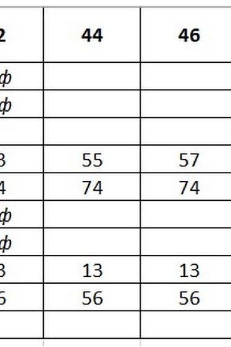 Размер Обхват груди (см) Грудь Обхват талии (см) Талия Обхват бедер (см) Бедра