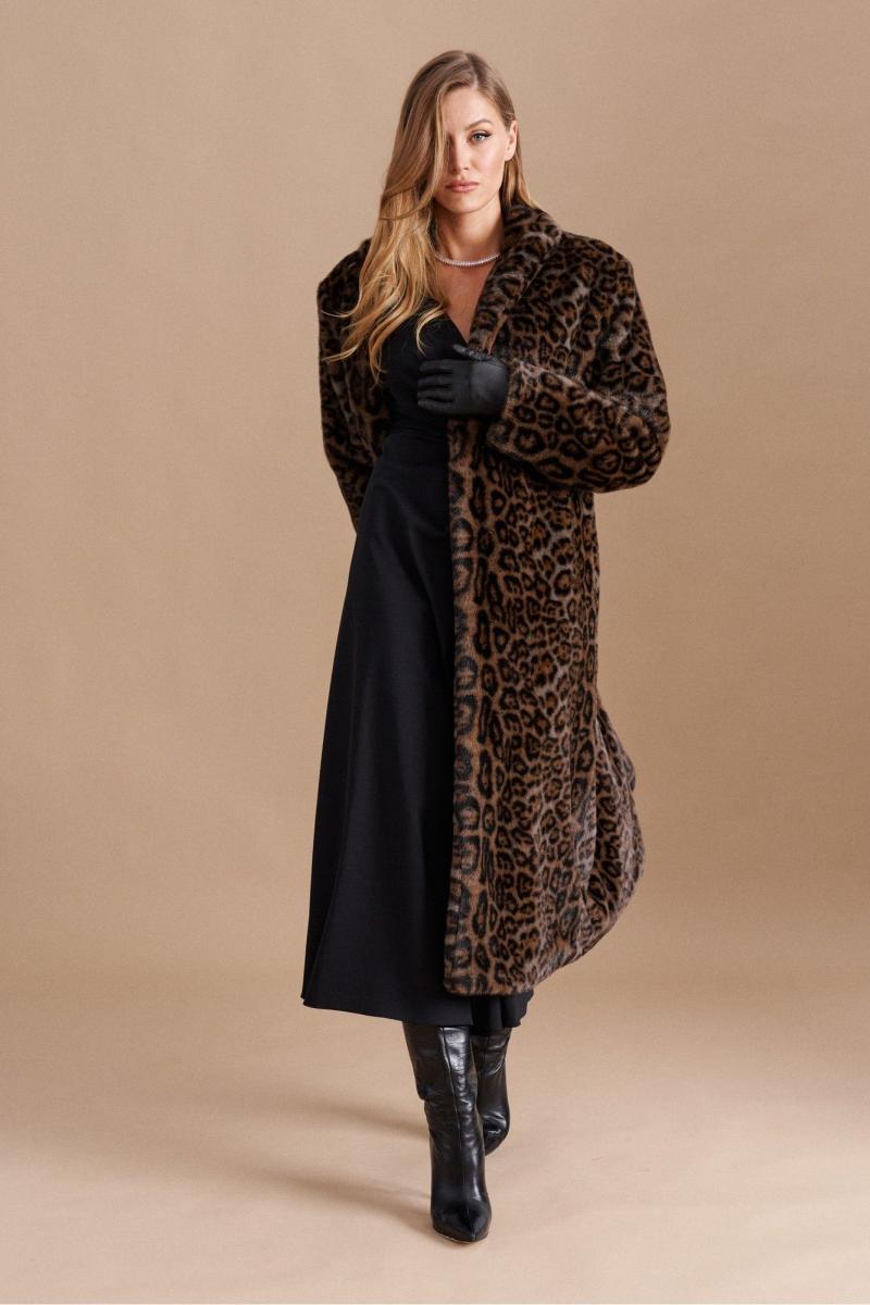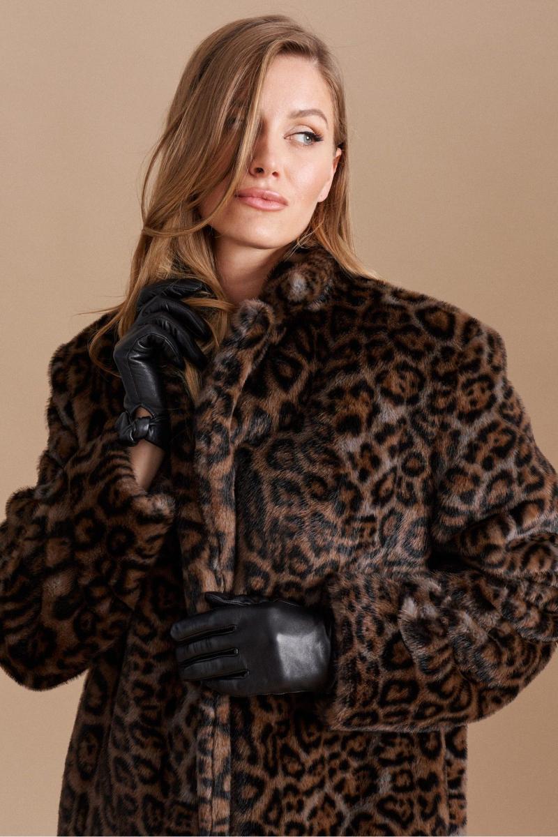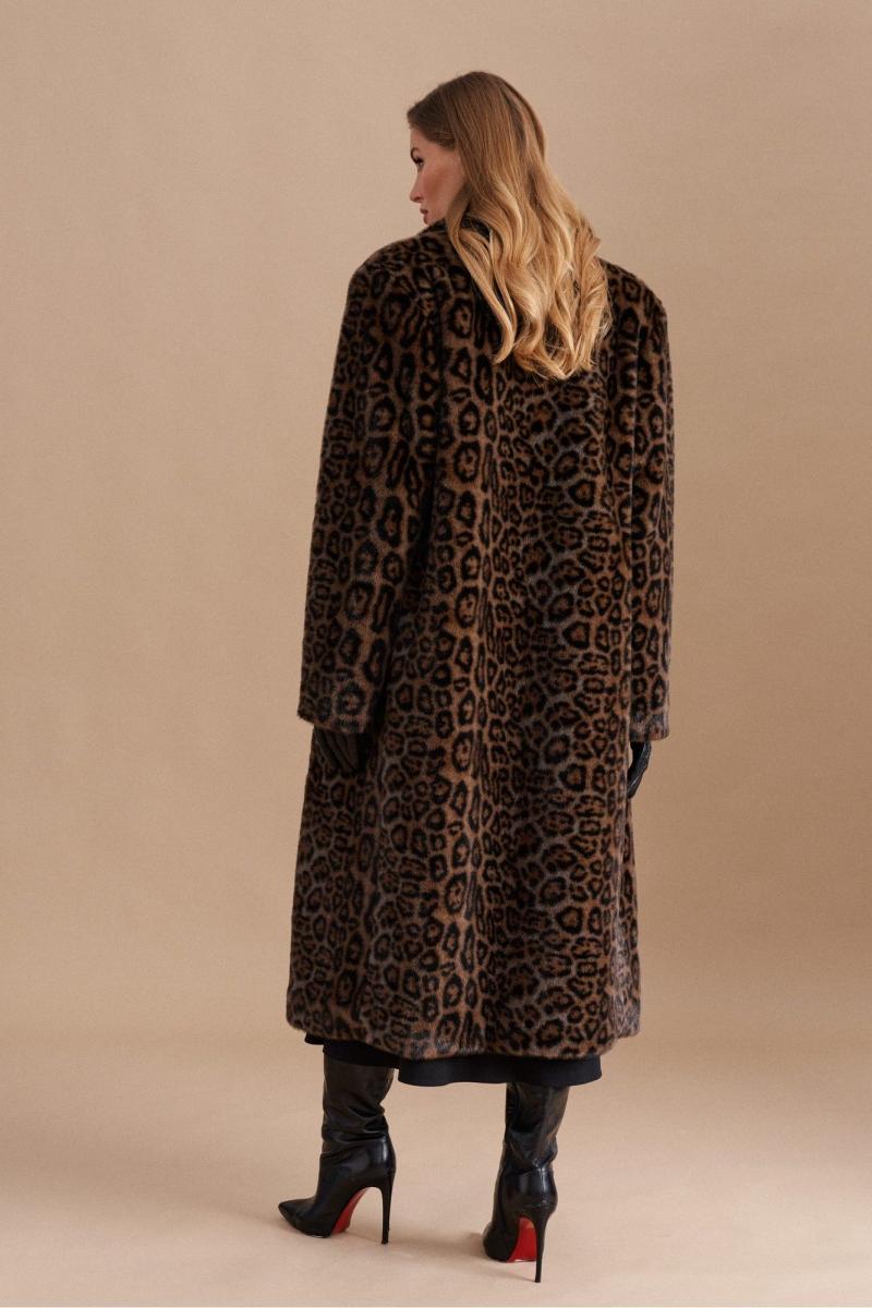 Пальто женское прямого силуэта из искусственного меха. Пальто на подкладке однобортное с отложным воротником пиджачного типа. Застежка фронтальная на петли, пуговицы. Карманы в боковых швах. Рукав длинный втачной. Длина изделия миди.