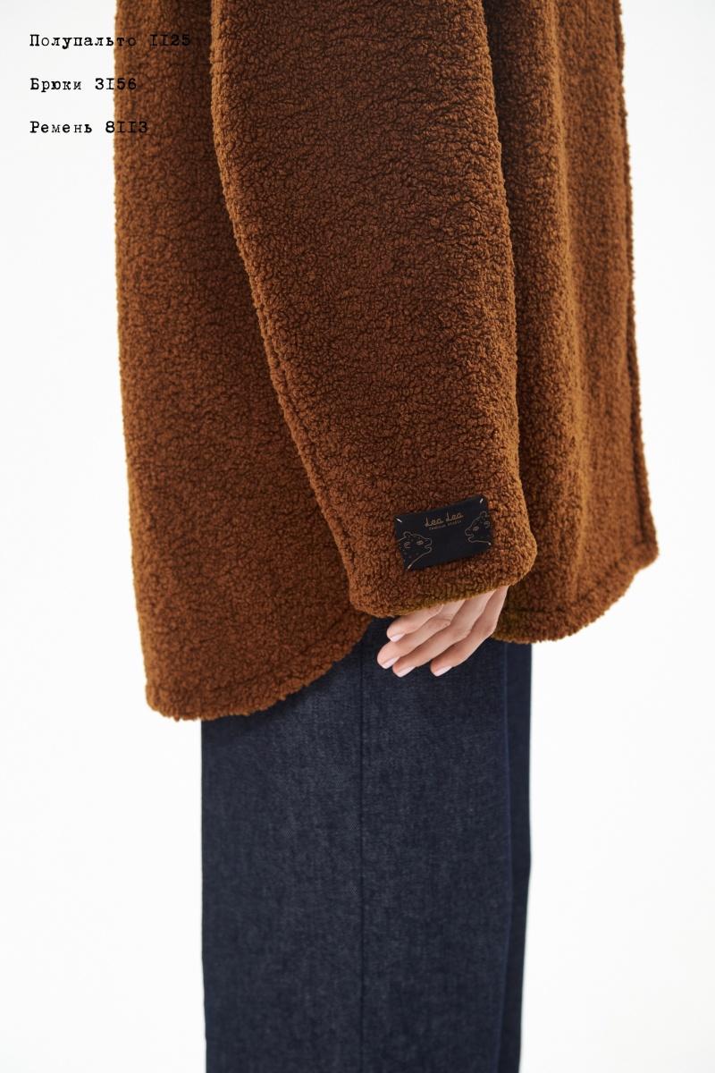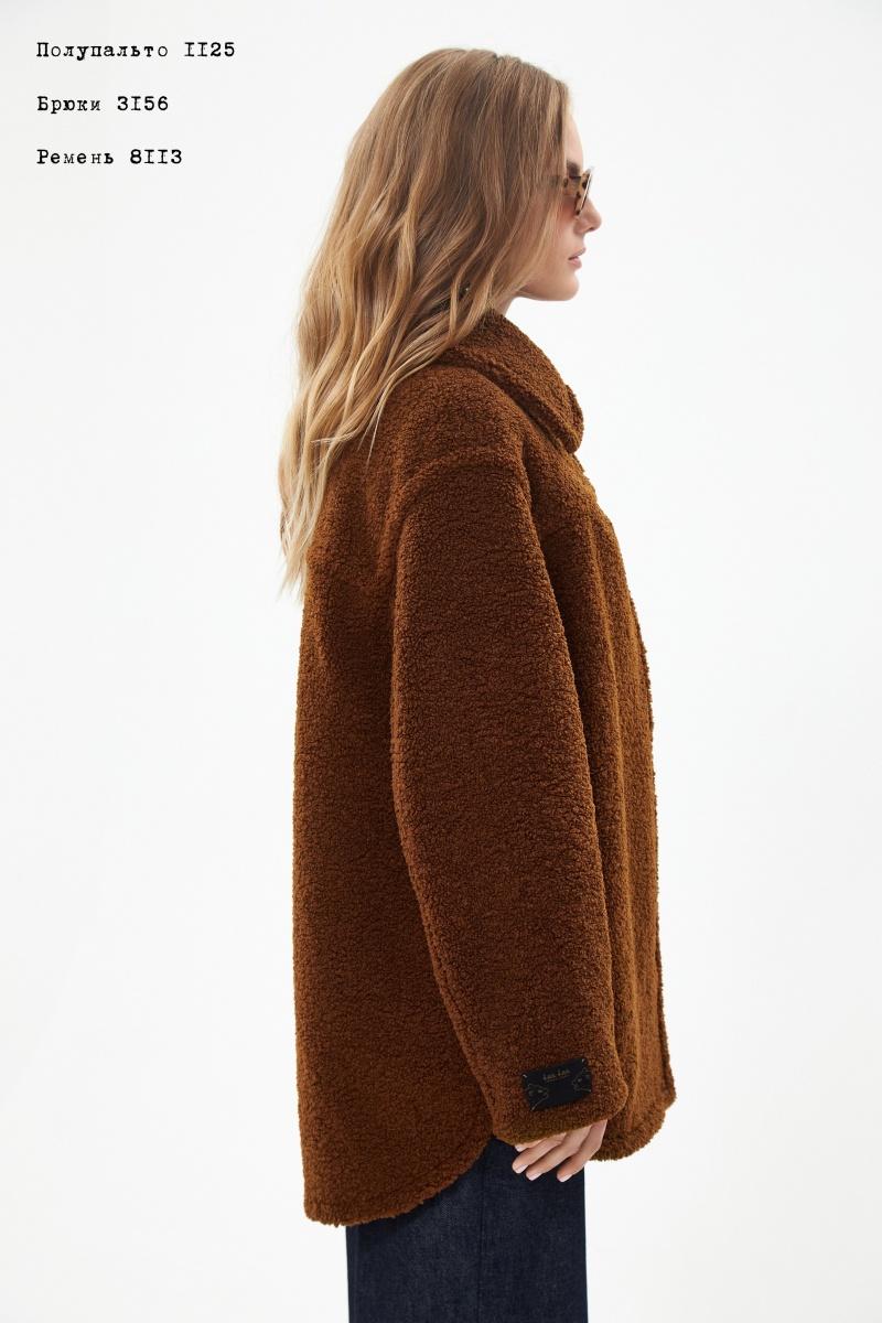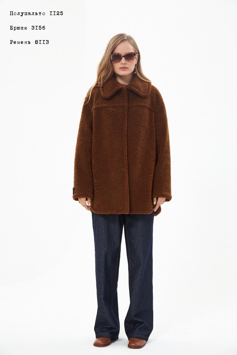 Полупальто женское прямого силуэта со спущенной линией плеча из искусственного меха на вискозной подкладке. Изделие с центральной застежкой на декоративные пришивные кнопки. Воротник отложной на стойке, в боковых -карман в шве. Изделие с отделочными строчками по воротнику, кокеткам переда и спинки, по рукавам, проймам, низу и краю борта. По низу рукава пришивной авторский принтованный декор. На левой полочке подкладки потайной нагрудный, с авторским принтом карман. По горловине на спинке подкладки-настрочная принтованная этикетка-размер. Длина изделия-80см.