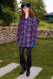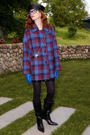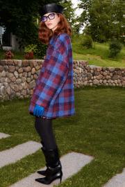 Пальто свободного кроя выполнено из пальтовой ткани дизайна "клетка", на подкладке. Линия плеча спущена, воротник втачной, застёжка центральная на петли и пуговицы. В боковых швах карманы, по спинке отрезная кокетка. Длина пальто по спинке от высшей точки горловины: 79 см Длина рукава от горловины: 71 см ОГ: 138-142-146-150-154 см (размер 44-46-48-50-52)