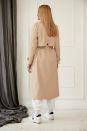 Плащ женский из плащевой ткани, прямого силуэта под пояс из той же ткани, воротник отложной на отрезной стойке, застежка двубортная на петли и пуговицы, по переду и спинке кокетки, по переду карманы с клапанами на пуговицах, по низу рукава паты с пуговицами, изделие на подкладке. Ширина по линии груди (44):59см (46):61см (48):63см (50):65см (52):67см (54):69см Ширина по линии бедер (44):57см (46):59см (48):61см (50):63см (52):65см (54):67см Длина изделия 122-123 см Длина изделия 63 см