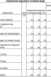 Таблица размеров
