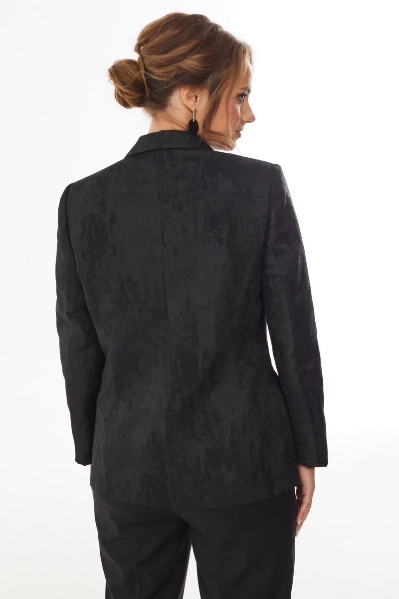 Жакет из костюмной ткани полуприлегающего силуэта. Воротник отложной с лацканами, по борту жакет застегивается на потойные петли. По талии протягивается пояс-бант. Жакет на подкладке.