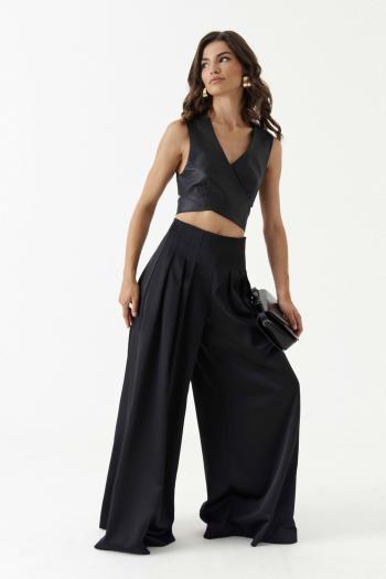 Двубортный жакет полуприлегающего силуэта, ткань хлопок сатин. По переду обработаны прорезные карманы с листочкой. Отложной воротник с лацканами. Рукав втачной длинный с разрезами по низу рукава. Спинка жакета со шлицой. Жакет без подкладки. Украшением данной модели являются стильные пуговицы. Длина жакета по спинке 67см., длина рукава 61,5см.