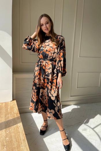 Жакет прямого силуэта, из мягкой ткани «рогожка», свободного кроя «оверсаиз» длиной ниже линии бёдер, со спущенной линией плеча, с двухшовными рукавами, с воротником и лацканами пиджачного типа, с двубортной застёжкой на две петли и пуговицы на уровне талии и с двумя декоративными пуговицами, расположенными на уровне груди. Детали переда с талиевыми вытачками и притачными бочками, без боковых швов. На уровне талии прорезные карманы в рамку с клапанами со скруглёнными концами. Спинка со шлицей в среднем шве. Рукава длиной до запястья со шлицей в локтевом шве и двумя парами прорезных петель и пуговиц. Воротник и лацканы с прямоугольными концами. Нижний край борта прямой. Жакет на подкладке.
