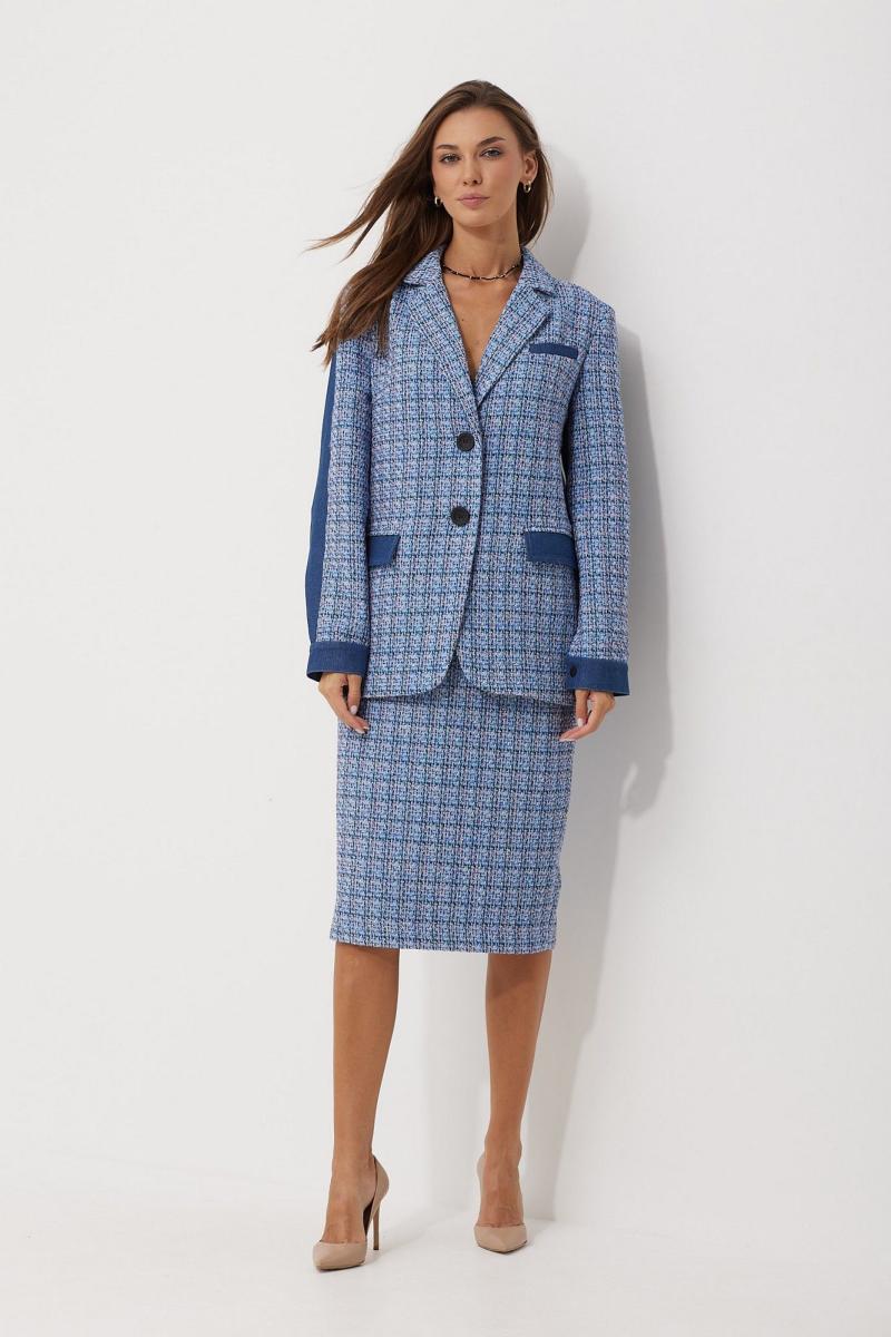 Жакет женский однобортный прямого, свободного силуэта, выполненный из тканей -компаньонов. Перед на подкладке, с застежкой на петли-пуговицы, выполнен из основной ткани с вытачками; слева в области груди расположена листочка(из ткани-компаньона), по низу функциональные карманы с клапаном из ткани компаньона. Спинка из ткани-компаньона, разрезная с отделочными строчками контрастного цвета; по низу притачная планка с декоративными патами, застегивающимися на кнопки. Воротник пиджачного типа. Рукав длинный, двухшовный, частично на подкладке, по низу обработан притачной манжетой из ткани-компаньона, застегивающейся на кнопку.Декоративные элементы и фурнитура могут отличаться от заявленных на фото. Цвет материала может отличаться по тону в зависимости от настроек вашего монитора! Длина жакета по спинке 66,5 см, длина рукава 61,5 см.