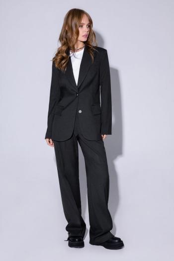 Жилет женский из джинсовой ткани на частичной подкладке. На передних половинках нагрудные вытачки и пропезные карманы с клапаном. Перед на подкладке, линия борта углом. Спинка с плечевыми вытачками имеет вырез по центру, с пояском по линии талии. Жилет застегивается на декоративные кнопки. Линия борта, горловины, вырез и низ на спинке отстрочен отделочными нитками. Длина спинки изделия 60,5 см