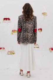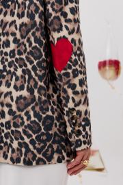 Леопардовый жакет для тех кто хочет быть в центре внимания. Стильный и удобный, он будет радовать вас ни один сезон. Жакет с центральной застежкой, на подкладке. На рукавах в районе локтей расположен декор в виде "красных сердец". Длина - 69 см.
