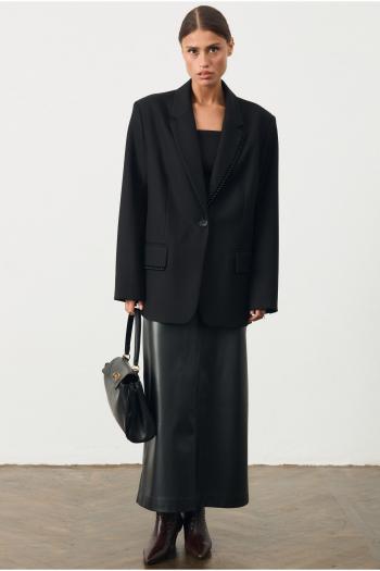 Современный жакет полуприлегающего силуэта из костюмной хлопковой ткани однобортный, застёгивающийся на пуговицу в натуральном стиле. Воротник пиджачного типа с отложными лацканами. Спереди обработаны прорезные карманы с клапанами и нагрудный карман с листочкой. Спинка со средним швом, отрезными бочками и шлицей по низу. Рукава втачные, длинные с открытыми шлицами по низу с пуговицами. Изделие на поливискозной подкладке.