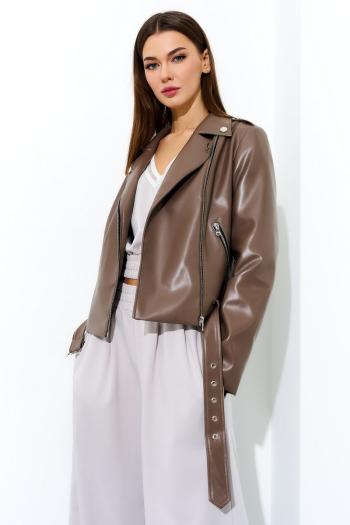 Жакет женский шоколадного оттенка из смесовой ткани предназначен для повседневной носки и выполнен в полуприлегающем силуэте. Он застегивается по центральной бортовой линии с помощью обметанных петель и пуговиц. Передняя часть жакета украшена двумя талиевыми вытачками и двумя рельефами, которые начинаются от проймы и продолжаются до линии подреза, что обеспечивает хорошую посадку и форму. На передней части расположены два кармана с клапанами и обтачками, а также декоративная деталь, придающая изделию стильный вид. Спинка жакета выполнена со средним швом и украшена декоративной деталью, которая идет от линии подреза по талии. Также на спинке есть две талиевые вытачки и два рельефа, начинающихся от проймы и продолжающихся до линии подреза по талии, что способствует более аккуратной посадке изделия по фигуре.