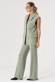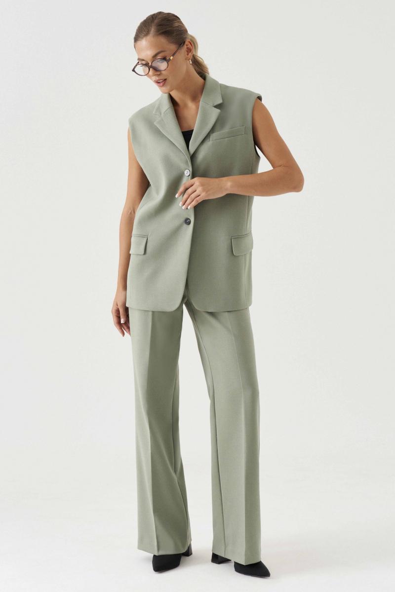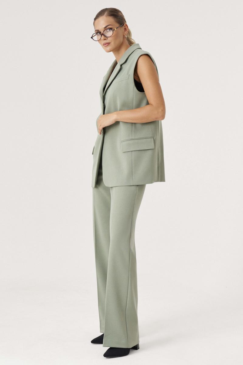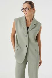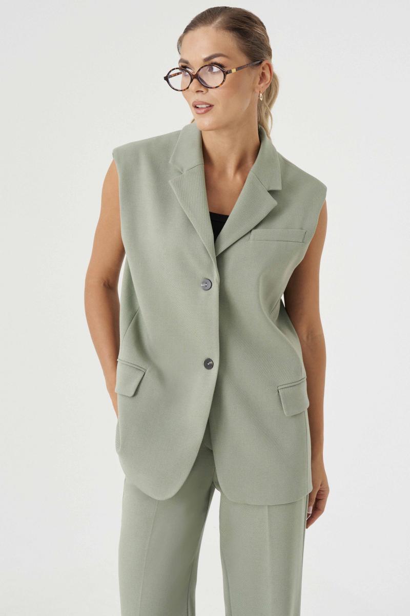 Жилет женский из смесовой ткани для повседневной носки на подкладке. Жилет полуприлегающего силуэта. Жилет с центральной бортовой застежкой на две обметанные петли и две пуговицы. Перед имеет два рельефа, идущих от проймы до низа изделия, а также на переде располагается нагрудный карман с листочкой и карман с клапаном и двумя обтачками. Спинка со средним швом и с двумя рельефами, идущими от проймы до линии низа изделия со шлицей в среднем шве спинки. Горловина обработана пиджачным воротником. Этот изумительный жилет станет вашим спасением для разного рода прогулок и мероприятий. Вы всегда будете в центре внимания.