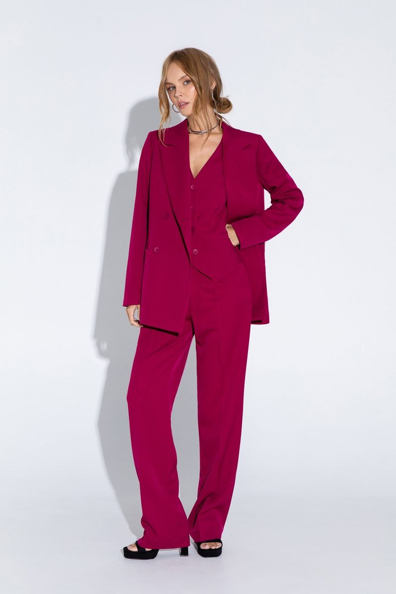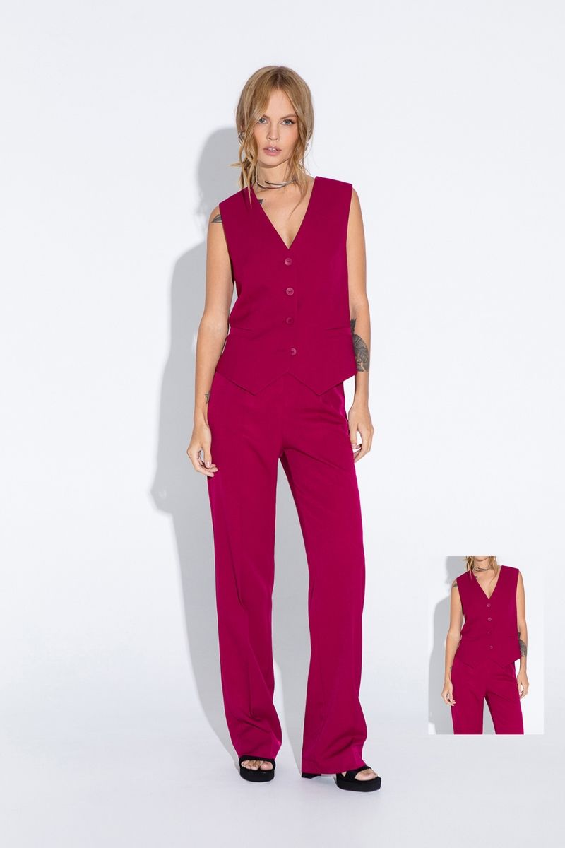 Классический жилет из текстильной ткани. Детали: жилет полуприлегающего силуэта с фигурным низом, застежка на петли и пуговицы, на подкладке Длина жилета по спинке около 48,5 в размерах 40-46 и около 51,5 см в размерах 48-52