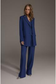 Трапециевидный жакет свободного покроя из текстильной ткани. Детали: пиджачный воротник, талиевые вытачки, функциональный нагрудный карман, прорезные карманы с клапанами, застежка на пуговицы, спинка со средним швом и высокой шлицей, рукава втачные двухшовные, жакет на подкладке Длина по спинке около 75 в размерах 40-46 и около 78 см в размерах 48-52, длина рукавов около 61 см