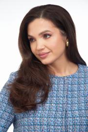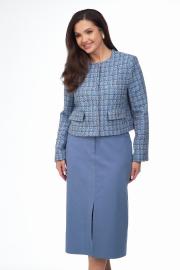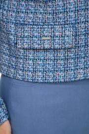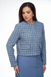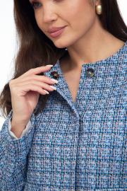 Жакет из ткани «Шанель» на подкладке, прямого силуэта, без воротника с центральной бортовой застежкой на пришивные кнопки. Перед с нагрудными вытачками и клапаном. Рукав втачной двухшовный. Вырез горловины круглый. Длина по спинке 50. Длина рукава 63.