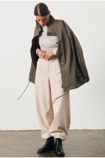 Спинка со средним швом, с талиевыми вытачками. Боковые швы с настрочными шлевками на уровне талии. Рукава втачные, двухшовные, длинные. Горловина переда и спинки округлой формы. Жакет с плечевыми накладками. Средняя длина жакета по среднему шву спинки - 65,0 (±3,0 см)