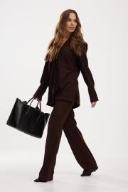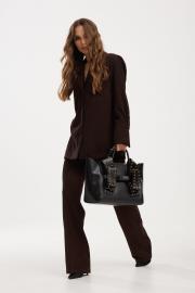 Жакет мягкой формы из ткани вельвет-рубчик. Застежка на петли и пуговицы. Воротник пиджачного типа. По спинке кокетка и две складки. Рукав рубашечный с манжетой по низу. Застежка на манжете на петлю и пуговицу. На переде накладные карманы.